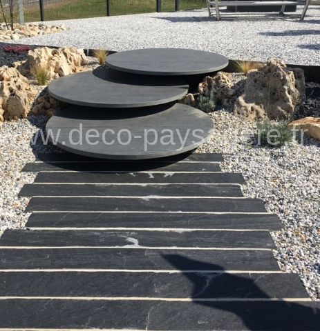 Ardoise naturelle ronde de 120 cm de diamètre et 4 cm d’épaisseur, idéale pour une utilisation en pas japonais, marche de jardin ou plateau de table basse. Son aspect brut et élégant apporte une touche authentique à vos aménagements extérieurs. Résistante et facile à intégrer dans tous les styles de décoration paysagère.