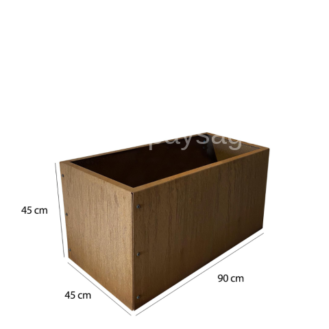 Jardinière Corten, dimensions 90 cm de longueur, 45 cm de largeur et 45 cm de hauteur. Sa patine naturelle résistante aux intempéries apporte une touche authentique et moderne à vos espaces extérieurs, idéale pour vos plantations décoratives ou potagères.