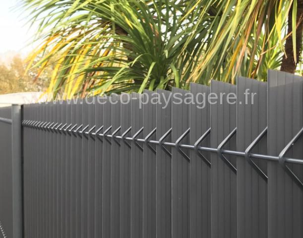 Occultant PVC Jugo en forme de V (triangle), conçu pour une occultation efficace et esthétique. Installation rapide et facile grâce au kit complet incluant 3 clips de soutien et 2 lames d’extrémité. Idéal pour préserver votre intimité en extérieur.
