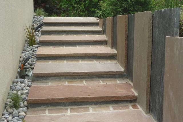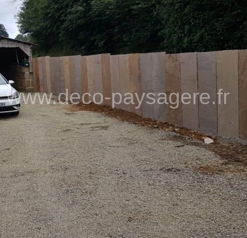 Le palis de grès multicolore, une roche naturelle aux nuances variées, sublime vos espaces paysagers. Idéal pour créer des escaliers, palissades ou délimitations esthétiques, souvent alterné avec des palis de schiste pour un rendu unique et harmonieux.