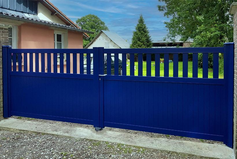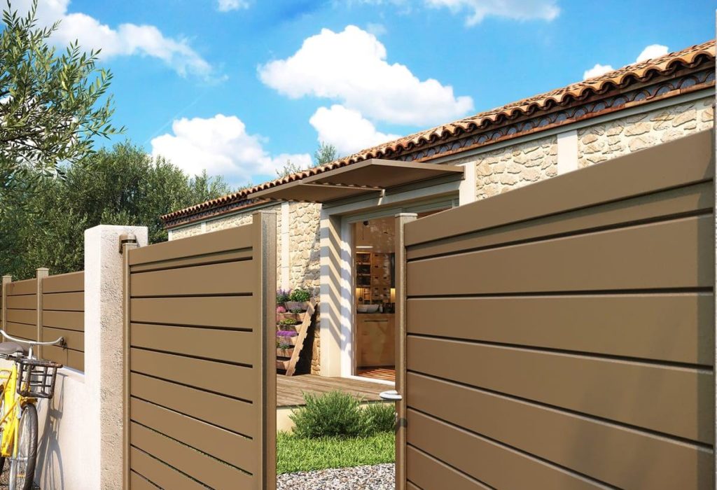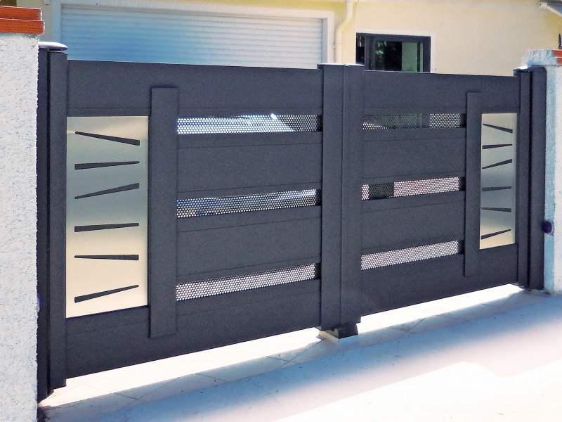 Portail coulissant ou à 2 vantaux en aluminium. Structure garantie à vie, laquage garanti 25 ans. Plusieurs modèles disponibles pour s’adapter à votre style et à vos besoins.